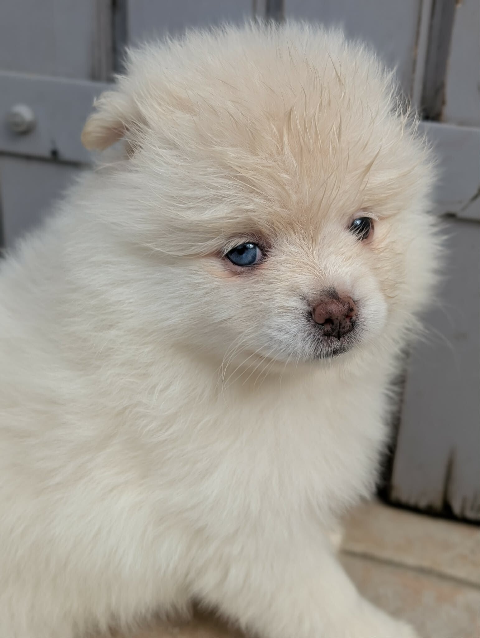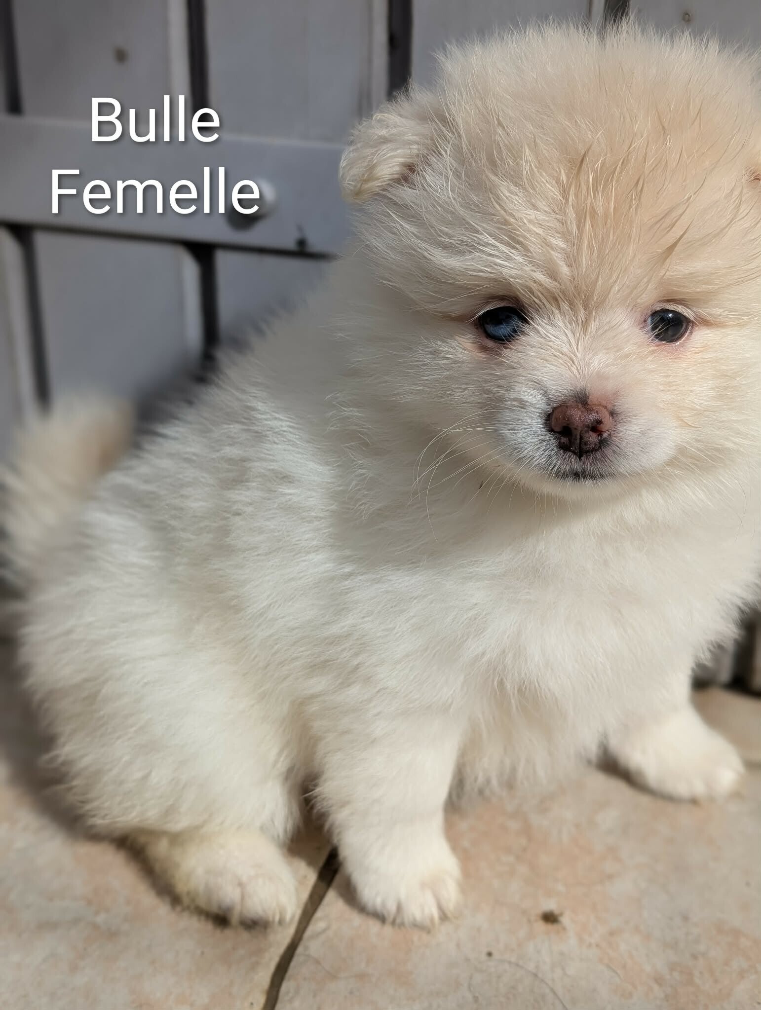 Couleur : Blanche (Merle fantôme), un œil particolor .